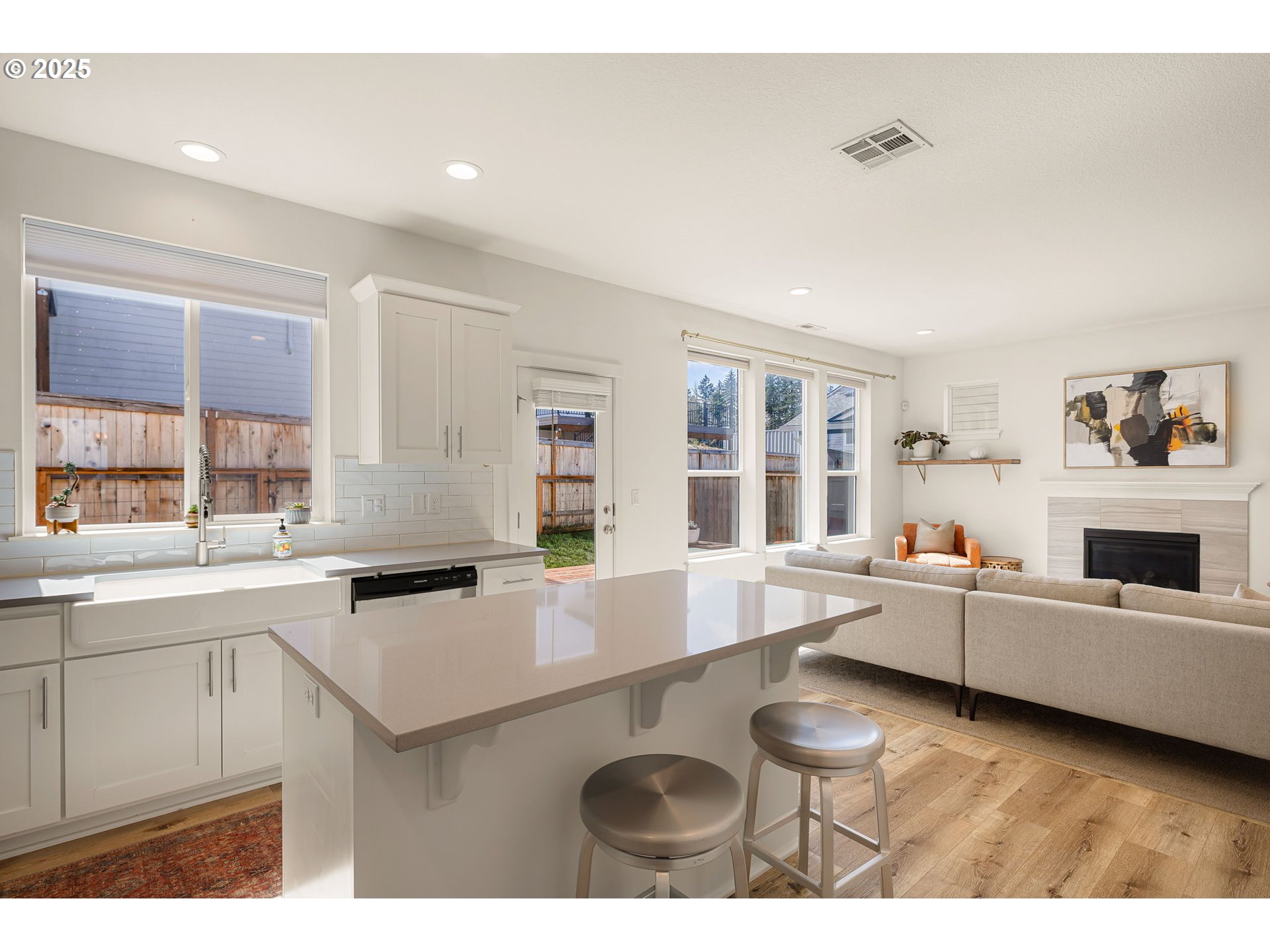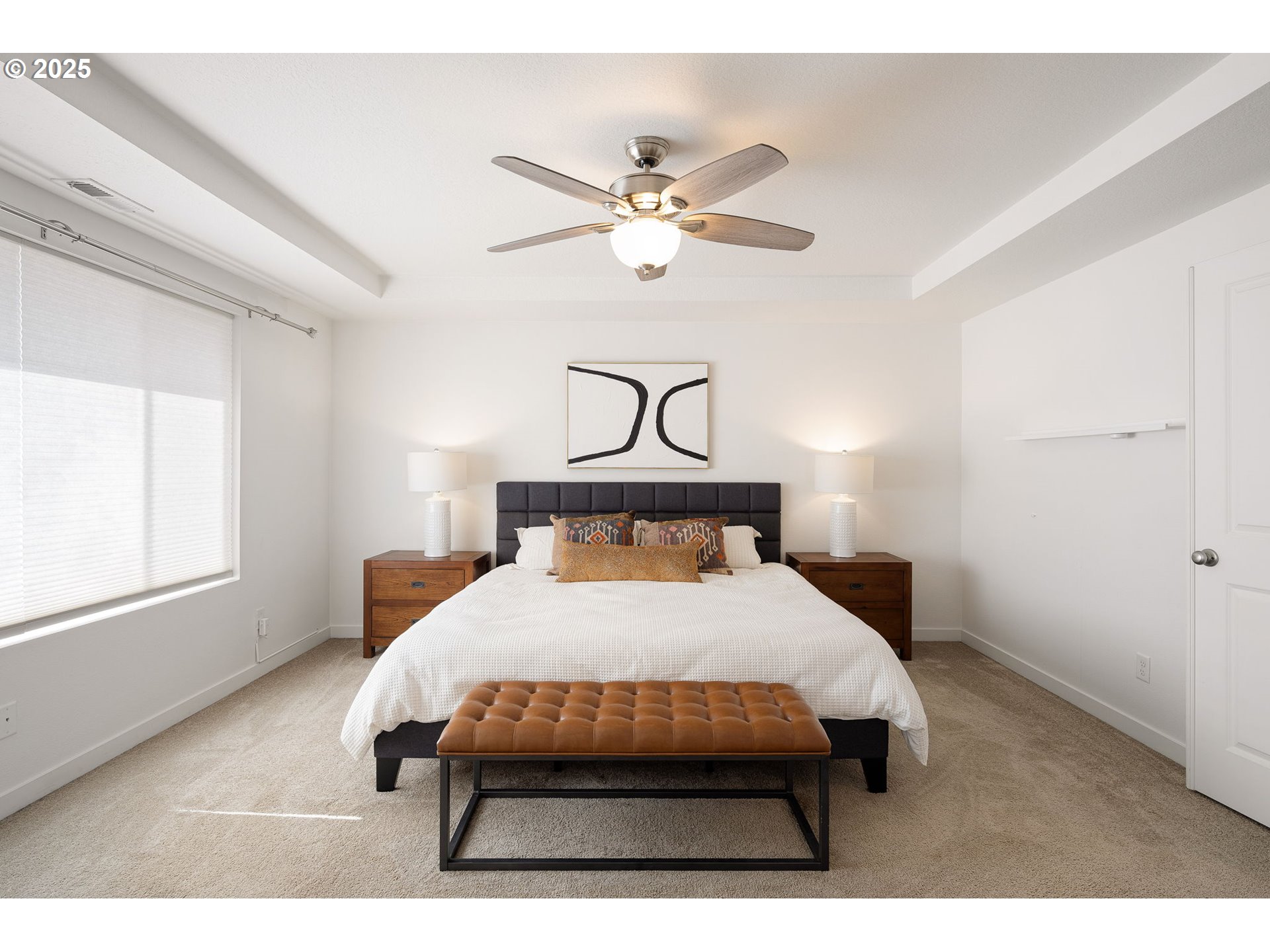 Hard-to-find newer construction near University of Oregon feeding into Edison, Roosevelt and SEHS schools! Wonderful floor plan that maximizes livability with an open and airy vibe, capturing views across the valley to the Coburg Hills. You will love the fantastic kitchen with quartz counters, eating island, stainless appliances, pantry, porcelain apron-front sink and separate dry-bar that leads into the dining room. The adjacent family room, featuring gas fireplace, gives the open-concept feel that makes every day living and entertaining enjoyable. A dedicated office with French doors allows for work-from-home or use as a den for extra hang-out space. Upstairs you will find the three bedrooms, with the primary suite being quite the jaw-dropper! French doors welcome you to your own in-home retreat with ample room for king size bed and more, plus the bathroom of your dreams with tiled walk-in shower, separate soaking tub, large vanity with dual sinks, separate toilet room, and walk-in closet. The guest bedrooms both feature walk-in closets and mountain views. A highly useful upstairs laundry with sink, folding counter, and storage will make your laundry chores a breeze. Lower entry mud room from garage has a large closet and great space for keeping things tidy and organized. This home was one of the first to be built in the subdivision and is on a premium lot with actual yard space front and back. Whether entertaining on the back south facing deck or enjoying the mountain views from the oversized covered front porch, the outdoor living space is equally as enjoyable as the inside. Well-appointed with numerous quality upgrades in kitchen and baths, plus comes with all kitchen and laundry appliances, cordless shades on all windows, UG sprinklers, hybrid hot water heater, smart home features, wireless security system, and is fully fenced/gated. A lovely home with timeless appeal!